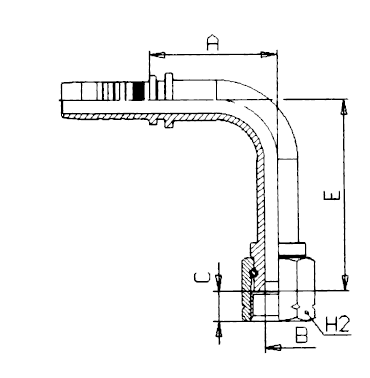 Nippel inv. JIC 90°. lång böj