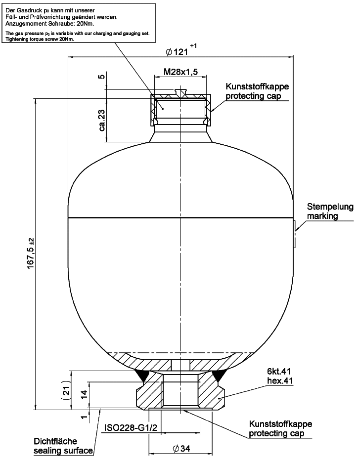 Membranackumulator SBO210-0,75E1/663U-210AK050